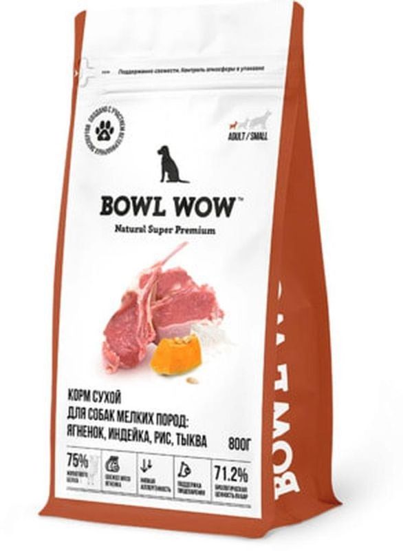 ГлавнаяКаталогКорм для собак → BOWL WOW, Сухой корм д/собак мелких пород с ягненком, индейкой, рисом и тыквой