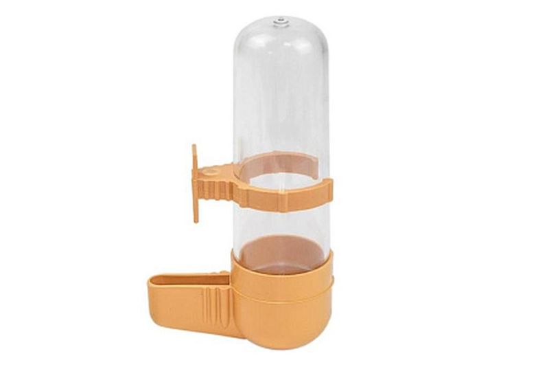 Поилка для птиц пластиковая, объем 75 мл. Крепится к стенке, держатель вертикальный.