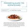 Cуточная норма: 3–4 пакетика в день для взрослой кошки (средний вес 4 кг), в два приема. Данная суточная норма рассчитана для умеренно активных взрослых кошек, живущих в условиях нормальной температуры окружающей среды. В зависимости от индивидуальных потребностей кошки норма кормления может быть скорректирована для поддержания нормального веса вашей кошки. Подавайте корм комнатной температуры. Следите, чтобы у вашей кошки всегда была чистая, свежая питьевая вода.