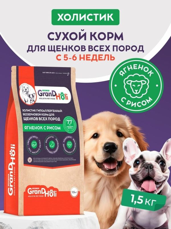 Сухой корм холистик для щенков всех пород "Ягненок с рисом" 1,5 кг